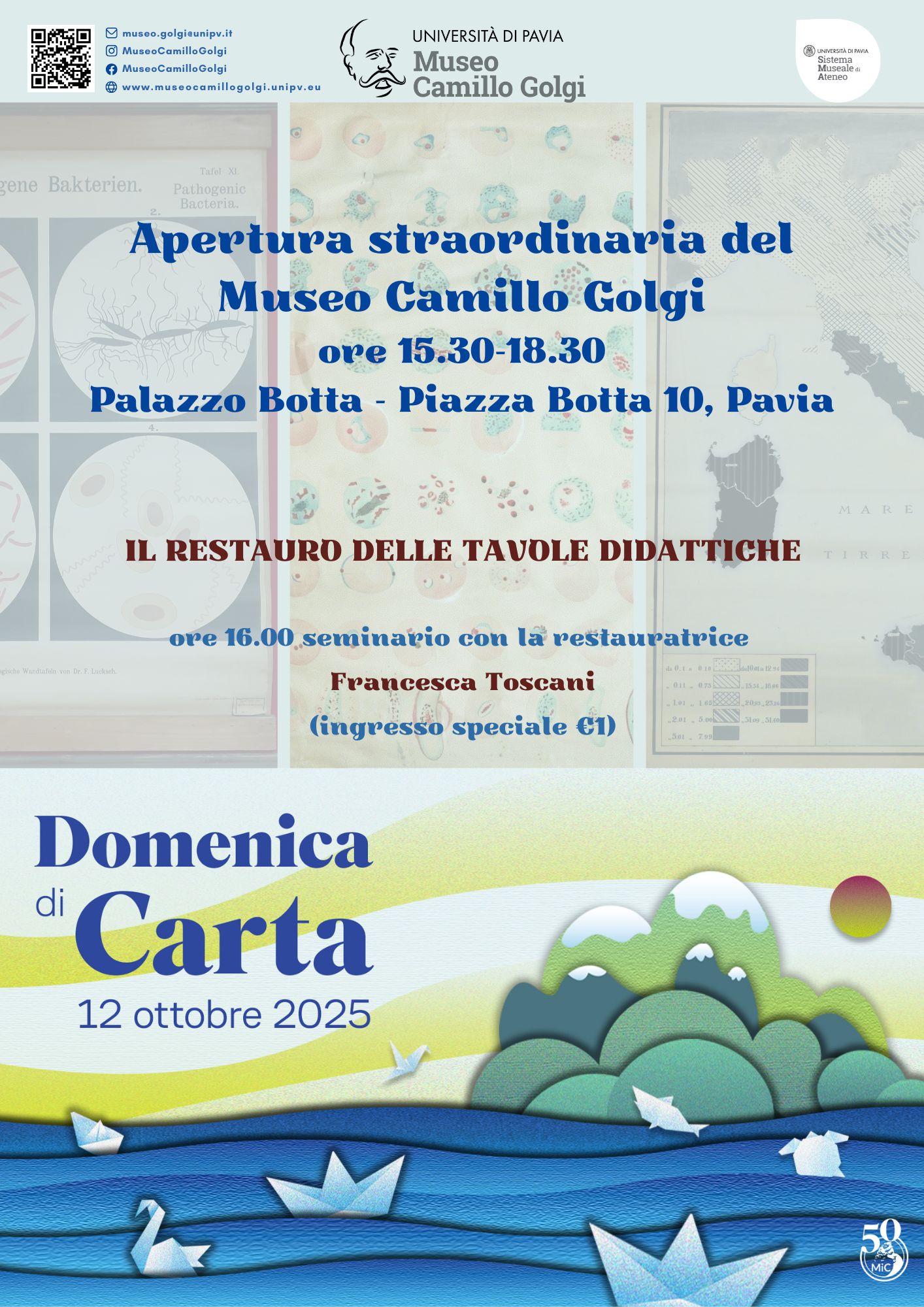 By Museo Camillo Golgi | Published 6 Ottobre 2025 | Full size is 1414 × 2000 pixels Domenica di Carta 2025 Bookmark the permalink.← Domenica di Carta 2025 – domenica 12 ottobre 2025 apertura straordinaria