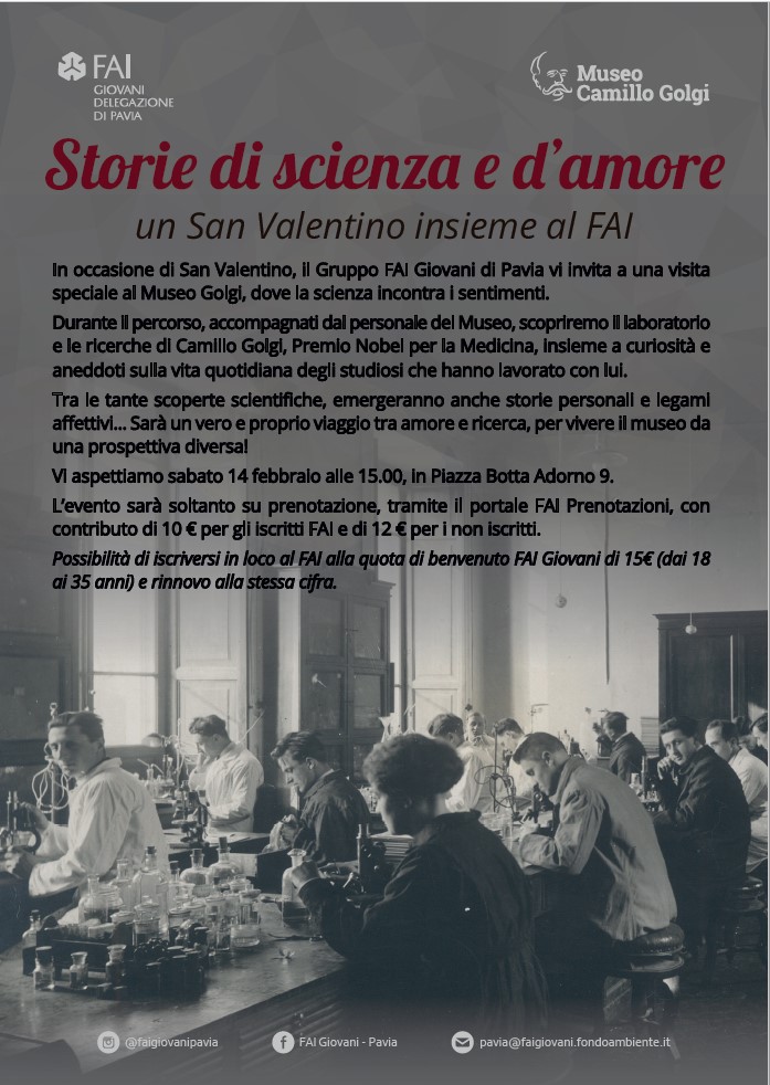 Sabato 14 febbraio 2026 il Museo Golgi organizza insieme al gruppo FAI Giovani di Pavia una speciale visita guidata dal titolo “Storie di scienza e d’amore”.